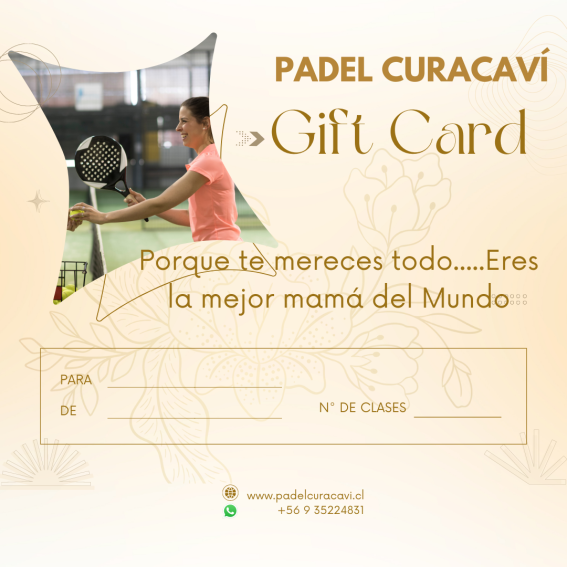 Tenemos el mejor regalo para las mamas. Regalale clase de Pádel, este deporte muy entretenido que le va a encantar. Tu puedes escoger la cantidad de clases que quieres regalar. 😮  No te vas a arrempentir. heart
